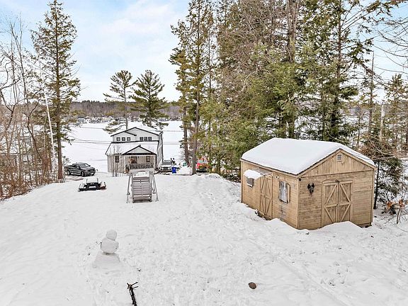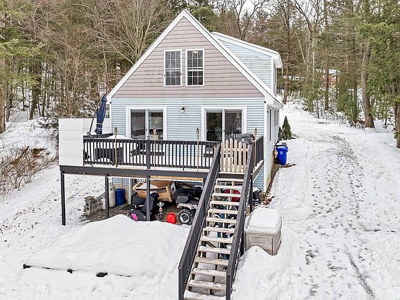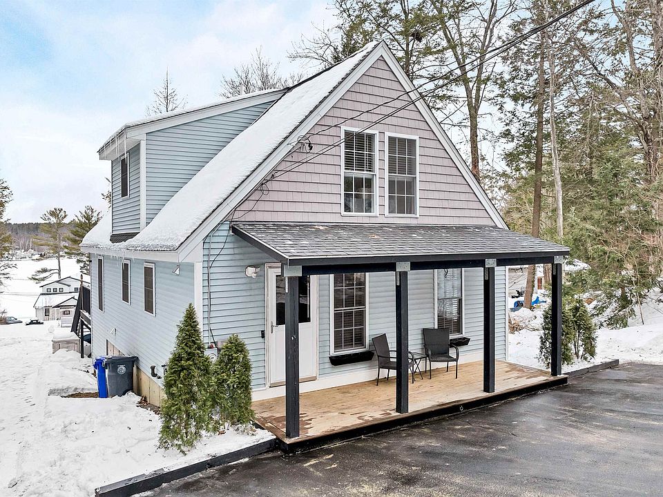 Welcome home to Lake living! Two Bedroom Cape with a state approved 3 Bedroom septic system. The moment you enter you will be greeted by the water views of Sunset Lake. Your right of way to the lake allows you to swim, kayak, fish, paddle board, rowboat - all of Summer's favorite pastimes. A Farmer's Porch is ready for the lazy, hazy days to come! The first floor has a combination of a fully, stainless steel applianced Kitchen and Dining area that has room for everyone and everything. An updated, half bath and laundry and the best is yet to come. Oversized Living Room with newer sliders lead to your large deck and delightful views of the lake. Upstairs you will find two Bedrooms and updated bath with a walk-in shower. Don't forget the Primary Bedroom - you get to wake up everyday to that lovely lake view. Every season has its own charm for you to enjoy. The Lower Level has high ceilings, plenty of storage, the potential 3rd Bedroom, an exercise area, a 1 year old furnace and a walkout to the fantastic backyard - just waiting for outside fun and barbecues. Yes, it will be Summer again! Plenty of off street parking for you and your guests. Minutes to RT 111 and all the area amenities and restaurants. Hampstead has so much to offer..truly a charming New Hampshire town with so much history. Please click on the MLS link for the drone overview, video and floor plans. OPEN HOUSES on March 8th & 9th from 12 -2...See you there!