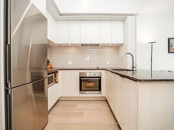 Stunning 1+1 BEDROOM PENTHOUSE CONDO with ONE EXCLUSIVE PARKING is up for sale at the DuEast Boutique Condos!! DuEast in the most recently completed condominium project by Daniels Corporation in the vibrant Regent Park neighborhood! Come experience the contemporary first-star urban living in this beautiful, open-concept suite. Featuring 10-foot ceilings, floor-to-ceiling windows and double mirrored closet at the Foyer. This bright unit is filled with a lot of natural light. Enjoy a modern/open concept kitchen with integrated appliances, the quartz countertop was recently upgraded in such a way to be able to use it as a breakfast bar too. The recently upgraded hardwood floors, undermount sink, custom backsplash, Built-in Dishwasher, Modern Electrolux cooking range and stainless steel refrigerator including high-end wooden cabinets & ensuite laundry are other highlights of the unit. The spacious den is perfect for a home office or can easily be converted into a second bedroom. The primary bedroom offers generous space, floor-to-ceiling windows, upgraded built-in custom closets, and an elegant double mirrored closet. The bright and spacious living room comes with a recently installed high-end blackout blinds and a walkout to a huge terrace balcony where you can enjoy a lakeside view while having your morning coffee. Tier Amenities include a 24-hour concierge, Gym and yoga studio, Co-working room with free Wi-Fi for the users, Games/REC room, media room, party room, rooftop patio with a BBQ area, bike storage, a Kid's play area, visitor parking, and more. Low maintenance fees covering building insurance, heat. cooling, water and more. It also includes one locker and one parking space that is located closed to the elevator. Close to public transit, parks, schools, restaurants, Fast food like Popeyes, Hospital and shopping, TTC streetcar is literally steps away from the building lobby. major highways like DVP and Gardener Expressway are minutes away.
