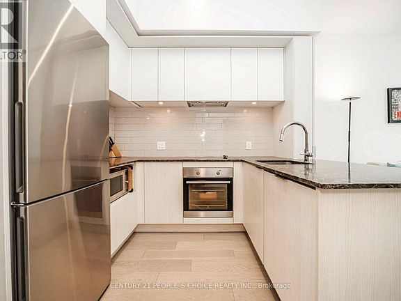 Stunning 1+1 BEDROOM PENTHOUSE CONDO with ONE EXCLUSIVE PARKING is up for sale at the DuEast Boutique Condos!! DuEast in the most recently completed condominium project by Daniels Corporation in the vibrant Regent Park neighborhood! Come experience the contemporary first-star urban living in this beautiful, open-concept suite. Featuring 10-foot ceilings, floor-to-ceiling windows and double mirrored closet at the Foyer. This bright unit is filled with a lot of natural light. Enjoy a modern/open concept kitchen with integrated appliances, the quartz countertop was recently upgraded in such a way to be able to use it as a breakfast bar too. The recently upgraded hardwood floors, undermount sink, custom backsplash, Built-in Dishwasher, Modern Electrolux cooking range and stainless steel refrigerator including high-end wooden cabinets & ensuite laundry are other highlights of the unit. The spacious den is perfect for a home office or can easily be converted into a second bedroom. The primary bedroom offers generous space, floor-to-ceiling windows, upgraded built-in custom closets, and an elegant double mirrored closet. The bright and spacious living room comes with a recently installed high-end blackout blinds and a walkout to a huge terrace balcony where you can enjoy a lakeside view while having your morning coffee. Tier Amenities include a 24-hour concierge, Gym and yoga studio, Co-working room with free Wi-Fi for the users, Games/REC room, media room, party room, rooftop patio with a BBQ area, bike storage, a Kid's play area, visitor parking, and more. Low maintenance fees covering building insurance, heat. cooling, water and more. It also includes one locker and one parking space that is located closed to the elevator. Close to public transit, parks, schools, restaurants, Fast food like Popeyes, Hospital and shopping, TTC streetcar is literally steps away from the building lobby. major highways like DVP and Gardener Expressway are minutes away. (id:41440)