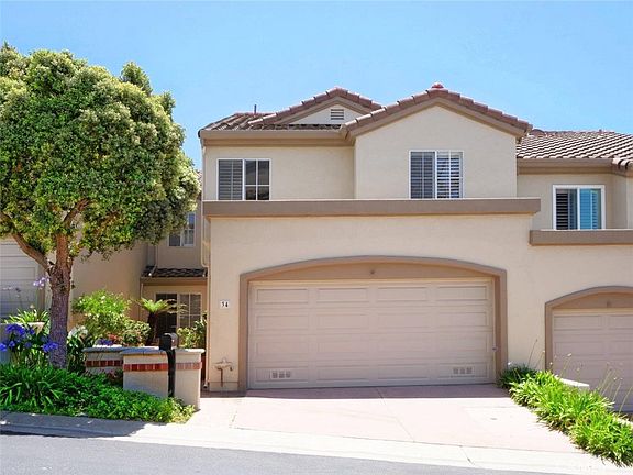 Nestled alongside a protected nature preserve with serene ocean views, this townhome in the heart of Palos Verdes offers a rare blend of natural beauty and refined living in the private, gated community of Villa Capri. The updated townhome welcomes you with an entry court lined with flourishing potted plants, setting the tone for the cheerful ambiance inside. As you enter the home, you’re greeted by an impressive living room, where soaring two-story ceilings and expansive windows flood the space with natural light. A charming fireplace anchors the room, while a sliding door opens to a zen-inspired patio that offers a glimpse of the ocean. The adjacent dining area also offers views of the ocean and the tranquil nature reserve, and flows seamlessly into a well-appointed kitchen with a breakfast bar and sunny nook. Meanwhile, a separate family room provides a cozy setting for relaxed evenings. A powder room is also conveniently placed on the main level. ON THE UPPER LEVEL, the spacious primary suite is a true coastal sanctuary, featuring cathedral ceilings, a sitting area with a fireplace, a walk-in closet, and access to a large private balcony with ocean view and breezes. The en-suite bathroom offers dual sinks, a jacuzzi tub, and separate shower. Two additional generously sized bedrooms share a full hallway bathroom. Additional features include new carpets and paint, direct two-car garage access, and use of the community pool and spa. Ideally located near Golden Cove Shopping Center, Terranea Resort, blufftop trails, and top-rated schools, this home blends comfort, elegance, and the best of Palos Verdes coastal living.