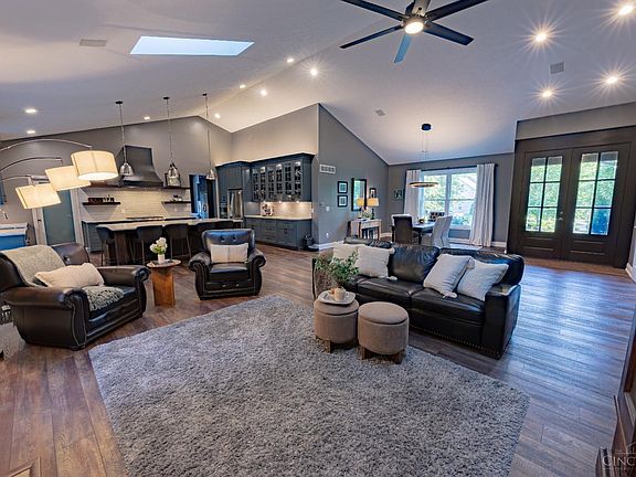 Welcome to 34 Wallace Grove Lane, a one-of-a-kind 3500 sq ft. custom ranch where timeless design meets unmatched craftsmanship, tucked at the end of a peaceful cul-de-sac in desirable Milford. Inside, an expansive open-concept layout features a show-stopping 9-foot Brazilian quartzite island, Wolf appliances, vaulted ceilings, wide-plank LVP flooring, and abundant natural light. Recent upgrades include a new roof (2022), new carpets throughout, new driveway, and new HVAC. The main floor primary suite offers serenity, while a second full suite on the lower level is ideal for guests or a private office. Step outside to an oversized paver patio with built-in lighting, fire pit, and lush landscaping, creating a private retreat for entertaining or relaxing. Thoughtfully designed with smart home features and premium finishes, and located just minutes from Old Milford's shops, dining, trails, and parks.