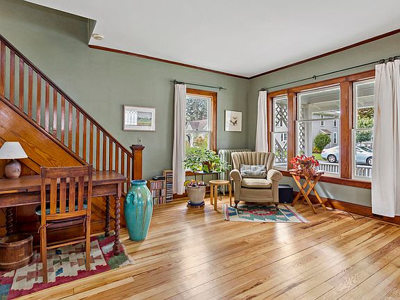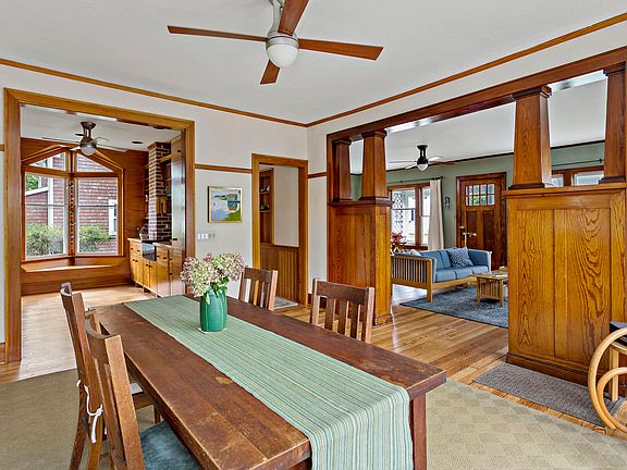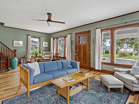 The MARSDEN is an Arts & Crafts bungalow from 1920 from The Aladdin Company of Bay City, Michigan, a manufacturer of architecturally designed houses from the early 20th century & has now been recognized as a significant architectural period. The main floor has an open & airy plan, a newly designed kitchen, dining area which opens onto a large wood deck through french doors & living area which extends across the entire front facade opening onto a covered porch. The building is comprised of finely detailed antique southern yellow pine floors, cabinetry, colonnade & architectural millwork on the interior & exterior architectural embellishments & bracketry, broad overhangs and beadboard porch ceiling & soffets. The one-car detached garage opens towards the street and backyard. Professional landscaping provides a great sense of beauty, color, peace, privact and serenity.Buyer to verify all information
