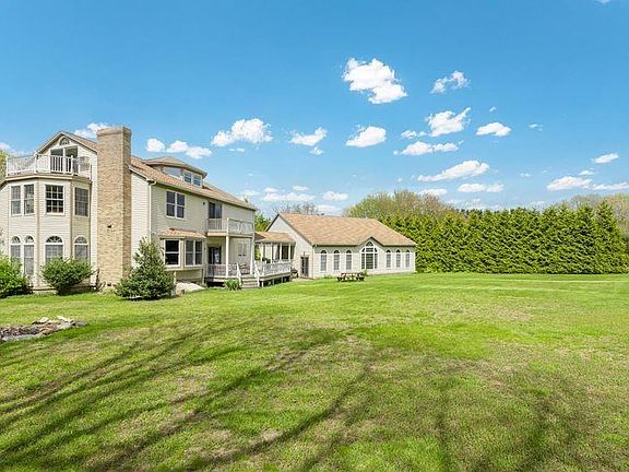 At the end of a cul-de-sac in sought-after East Passage Estates, this custom Colonial is nestled on nearly 2 acres of complete privacy. Bordered with stone walls and specimen trees, the expansive rear yard abuts 26 acres of permanently protected open space with soothing sweeping pasture views. Main level features formal dining & living room w/beautiful hardwoods, a study & a spacious family room w/fireplace opens to a rear deck for al fresco entertaining and adjoins the kitchen & breakfast room. The primary bedroom is en suite with fireplace & a private balcony overlooks serene views. A stunning private office on the third level has 2 balconies & further showcases pastoral vistas. The finished lower level has a recreation room w/wet bar, gym area, sauna, full bath and storage including a workshop. The oversized 3-car attached garage with extra high ceiling is ideal for boat storage & has a work shop. Adjacent to the garage is a sun-drenched spa-like building with heated pool and lounge for relaxation and enjoyment. This space can be converted to guest quarters, in-law apartment, artist studio or office. Further features include a tennis court and deeded beach rights to Cranston Cove on the shoreline of Narragansett Bay to enjoy kayaking, picnics and amazing sunrises. Near village center, great restaurants, beautiful marina and 9-hole golf course. Newport is within 10 minutes, Providence 25 min. & Boston 1.5 hours. A treasured peaceful retreat in a costal paradise. RARE FINE!