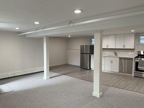 Newly renovated garden level one bedroom apartment in South Medford. Freshly renovated and painted, this open concept unit with quartz kitchen counters, has brand new stainless appliances including a gas range and dishwasher. The kitchen area is eat-in and, and the unit features modern laminate flooring in the kitchen and bedroom, recessed lighting and beautiful beadboard walls. The lounge area is open to the kitchen providing a spacious feel and is great for entertaining. Be the first to occupy this beautiful space! Heat and electric utilities included. Common laundry and common yard. Enjoy all the shops and eateries on Main St.