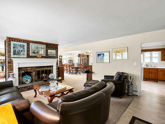 Fall in Love with this Pines 3 Bedroom, 3 Bath Extended Ranch, Open Floor Plan, Light and Airy, Panoramic Andersen Windows, Fireplace, Built-Ins, Extended Primary Suite, Vinyl Siding, Newer Roofing (1 Year), 3 Zone HW Heating (Oil Tank in Basement), Porch, New Attic Fans (2), Double Cesspools, , Large Part Finished Basement Plus Addit Storage Under Extension, Circular Drive, Flat Usable Private Yard with 20x40 IGP, Prop Tax with Basic Star $11,994.