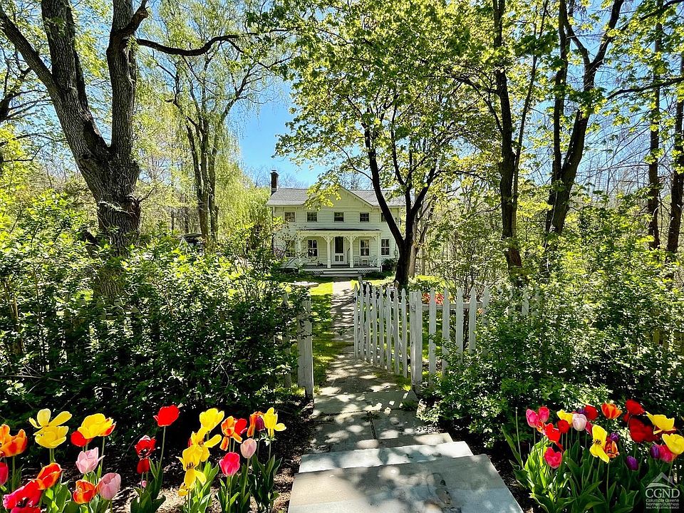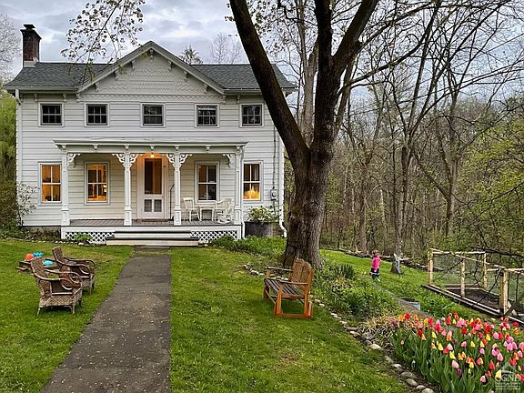 Livingston Centerhall on 2.8 acres with Klein Kill Stream frontage.Located on a picturesque country road and under 10 minutes from both Hudson & Germantown this 4 bedroom/2.5 bath 1877 house features a living room with wood burning fireplace, kitchen with original hoosier style cabinet and farmhouse double sink, formal dining room, light filled year round sunroom, and 2 home office/work spaces. Mechanicals have been updated including geothermal heat and air conditioning. Restored classic front porch. The landscaped grounds include 1,500 flowering bulbs, stone walls, fenced terraced gardens with six large beds and stone steps. Extensive stream frontage.Truly a wonderful country home!