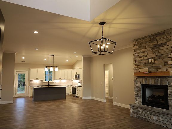 New Build - 3 bdrms/2.5 bths, 1956 heated space, in new country setting sub-division, granite countertops, large kitchen island and walk in pantry, LVP throughout, gas log fireplace, pan ceiling in primary bedroom, dual vanities in primary bath, dormer skylight in great room, large welcoming front porch, covered rear porch with ceiling fan, 19X19 patio extends out from back porch. Room sizes are approximate, if square footage is important, buyer should measure NOTE: Due to additional upgrades made during construction, price was increased.