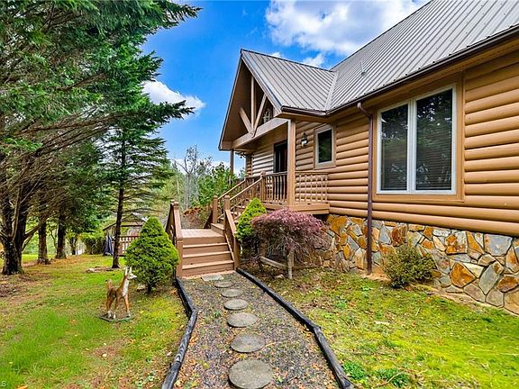 Nestled in the desirable Two River Country community, this charming log home captures the essence of mountain living with its scenic views, tranquil surroundings, and access to the beautiful New River. The spacious design offers plenty of room for gathering and relaxation, including a versatile lower-level retreat complete with a kitchenette, full bath, and bonus recreation area featuring a pool table and electronic games. Step through the lower-level doors onto a custom stone patio—perfect for entertaining or unwinding outdoors. The main level includes two comfortable bedrooms, a full bath, a well-appointed kitchen, and a convenient laundry area, all designed to make everyday living easy and enjoyable. Upstairs, the loft level features a private primary suite with a full bath, an open landing, and a walk-out balcony to enjoy the fresh mountain air. Sold fully furnished, this inviting home is ready to welcome you to your next mountain adventure.