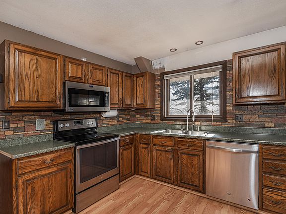 Are you looking for a place outside of city limits that is quiet with space (6 acres) to make it your own? This property has a ranch style home with 4 bedrooms & 2 bathrooms. The main floor has an open living space along with 2 bedrooms a full bath.. The lower level has a finished bathroom & 2 additional bedrooms and a laundry room. The owners made the family room into a large primary non conforming bedroom with a walk in closet area. The laundry room has a washer & dryer in there along with some storage & cabinet space. This home is very well insulated & stays cool in the Summer & holds the heat in the Winter. This property has a 50X80 Shop, a 40X60, Quonset & some grain bins. The shop has plenty of workbench space along with two built in rooms for storage, office space or whatever you want to make them into. The shop has overhead doors to enter from the North & the West to store your vehicles. The Quonset also has electricity & lights with a ton storage. There is a pasture area that is completely fenced so if you want to have a hobby farm it is already to go for you. In fact the entire property is fenced in so you can let your pets roam the property. If you like to watch wildlife you will have plenty of opportunities to see the deer, upland game birds & an occasional moose in & around the property. This is a great property to make ''Home Sweet Home'' Call a REALTOR today to see this home.