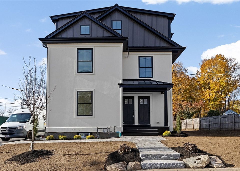 Offer deadline Tuesday, 11/18 by 12 noon! Welcome to this stunning contemporary condo in West Roxbury’s desirable Brook Farm neighborhood. This modern home features 3 spacious bedrooms, 2 full baths, and 2+ driveway parking spots. The chef’s kitchen offers top-of-the-line appliances, custom cabinetry, quartz countertops, and elegant backsplash finishes. A bright open layout with 9” engineered hardwood flooring adds warmth and sophistication. The lighted staircase leads to a private lower-level primary suite with an adjacent living area and laundry room. Enjoy a large yard and stone patio perfect for entertaining. Additional highlights include a stucco exterior, 9-ft ceilings, high-performance windows, metal roof, and 30-year lifetime IKO roofing system. Combining luxury, comfort, and efficiency—this home is a must-see!