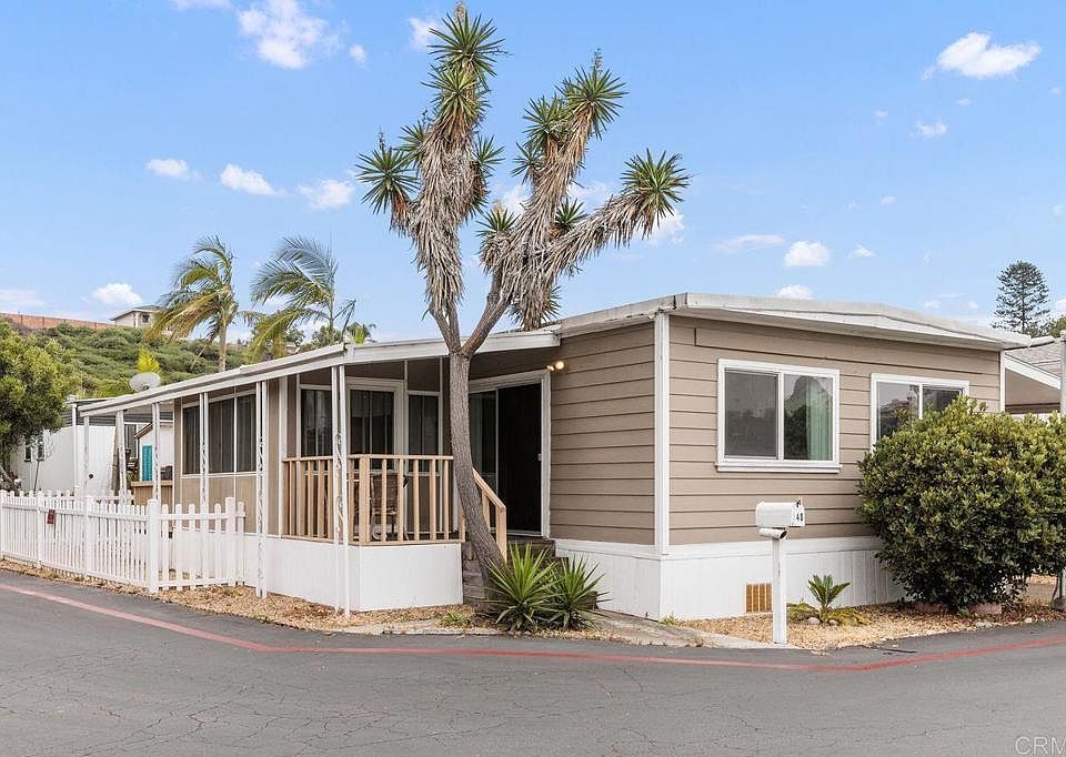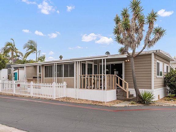 The charming 2 bed/2 bath, 1120 sq ft mobile home is located West of the 5 freeway in a rent-controlled, family park known as Cavalier Mobile Estates. The home features updated kitchen and baths, newer flooring, windows, paint, lighting and more. A portion of the front porch was enclosed offering additional space not included in the square footage. The modest yard features white picket vinyl fencing, perfect for a small dog. The carport can accommodate 2 cars and there are full size washer/dryer hookups inside a shed within the carport. Two guest passes are included for visitor parking. The space rent is currently $487/month for those who plan to owner-occupy. Park amenities include 2 pools, a spa, 2 clubhouses, a tot lot, 2 car washes and 2 laundry facilities. The home is conveniently located just off the 5 and Oceanside Blvd, less than 1 mile from the beach.