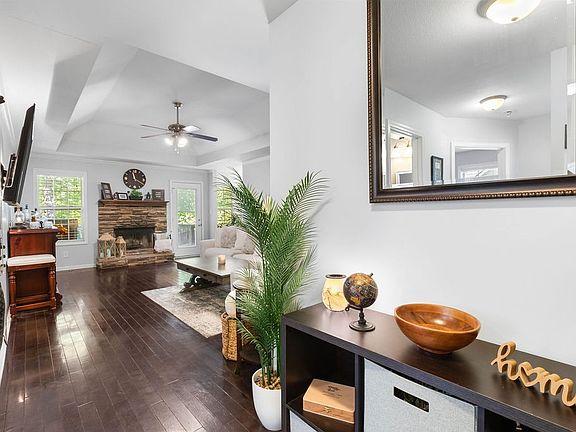 Come check out your beautiful new home! This 3 bed, 2 bath home features a large great room with a cozy wood burning fireplace, a spacious eat-in kitchen where all appliances remain. The primary bedroom has access to the back deck overlooking the peaceful .27 acre lot, walk-in closet, on suite bath with double vanity, and a garden tub! Roof is only about 3 years old. The backyard is wooded with no rear neighbors. NO HOA! Fresh paint throughout, new carpet, washer and dryer remain. Set up your showing today!