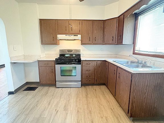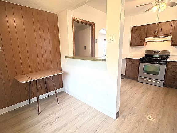 3 bedroom and 1.5 bathroom house with attached one-car garage. The kitchen offers a built-in breakfast bar that opens to the dining area. The basement includes a laundry room, a storage room, and a finished room complete with a half bath that could easily serve as a fourth bedroom. Recently installed flooring in kitchen, dining area, basement room, and half bath.