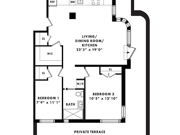 Spacious 2 bedroom, 1 bathroom featuring modern finishes, custom marble features in bathrooms, chef's kitchens with integrated stainless-steel appliances, ample closets, wide oak plank flooring and plenty of space for dining.