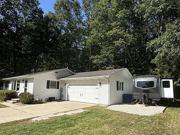 The large deck and patio out back create the perfect setting for outdoor entertaining, all overlooking an oversized, wooded lot for privacy and tranquility! 2 1/2 car attached garage with tons of storage and cabinetry with counter space for serving food for all those Pentwater events Plus, an exterior crushed concrete pad for RV parking with 30amp hookup. Low maintenance exterior. Home is under surveillance.