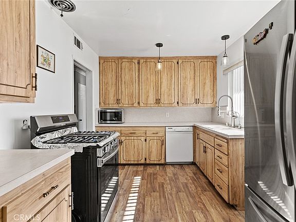 This charming Rialto home features 4 bedrooms and 1.5 bathrooms, offering both comfort and versatility. The property includes approximately 500 additional square feet split between a spacious enclosed patio perfect as a sunroom, home office, or entertainment area, and a detached 4th bedroom that provides excellent potential for an ADU conversion or multi family living. Built in 1956 with pride and quality craftsmanship, the home showcases well maintained hardwood and laminated wood flooring throughout, an open kitchen with ample cabinetry, and a large living room with a cozy fireplace. Enjoy the convenience of central A/C and heat, a whole house fan for energy efficiency, and a two car garage with a rear workshop area. The property sits on a generous lot with a nicely sized front and back yard, a large storage shed, and plenty of space for parking. Ideally located near schools, shopping, parks, and freeway access, this home blends classic charm with modern potential.