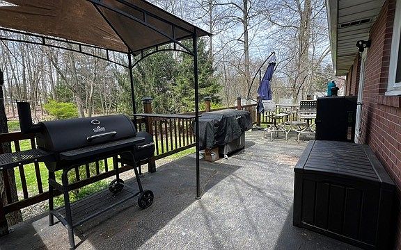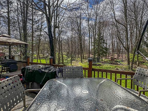 Welcome to this spacious brick ranch loaded with features and a beautiful back yard complete with a babbling brook! This home offers spacious rooms, a combination of hard wood floors, water resistant vinyl and wall to wall carpet, a partially finished basement complete with a bar island and half bath. A unique feature is the separate storage area in the basement that opens up into the back yard via a garage door. The updated kitchen will make cooking a joy. The master bedroom includes a master bathroom as well. The 2nd full bath has been fully updated with custom tile and cabinetry. Enjoy summer fun on the deck in the back while overlooking the beautiful large back yard. Or on those rainy days, enjoy the spacious finished basement complete with a beautiful gas fireplace and half bath. The newer roof and windows make this home a wonderful value!