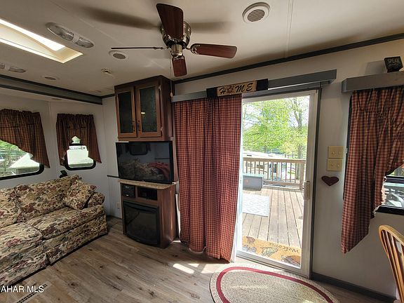The sellers upgraded the flooring. They also installed new upper cabinets, a regular commode and had metal roofs installed over the slideouts to protect them from the weather.