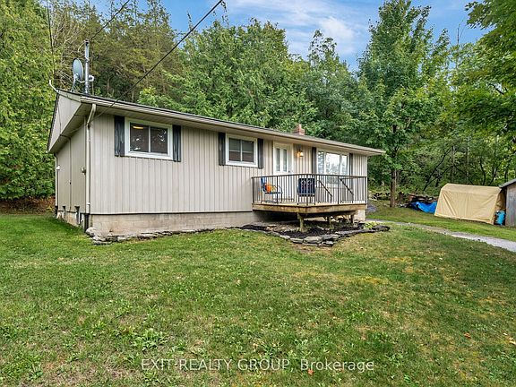 Great home for a small family, that is nestled on a private treed lot, minutes from the village of Frankford, 10 minutes to CFB Trenton or the 401 and just meters to the Trent River! Lovely gas fireplace in the living room, ample oak cupboards in the kitchen. 3 bedrooms, (one of which is being used for an office/laundry room, but laundry could easily be moved back downstairs). This Bungalow has lots to offer! Home features New Septic System 2025, Roof 2019, AC 2020, Carpet Free, includes Fridge, Stove, Dishwasher, Range Hood, Vinyl Windows, Private Backyard with fantastic deck, 1 km to the public boat launch & Frankford splash pad. Great Find Great Price. Septic system bed to be reseeded by septic installer in the spring.