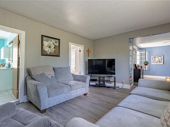 Sitting on a large city lot, this property offers plenty of outdoor space to enjoy, including a covered tiki bar area perfect for entertaining guests. A detached two-car garage adds extra storage and functionality.