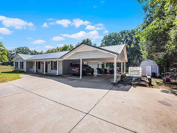 Looking for a spacious one level home? This home is located a few miles east of Trenton with no city taxes. Very neatly organized and well kept. It has 5 BR, 3 BA, a kitchen with a breakfast bar, a dining area, and pantry. The stainless appliances stay with the house. There are two flex rooms for the person needing a play room, office, craft room, den, or sewing nook. Buyer can decide how to use the extra space. There is also a separate laundry room, a fenced in back yard, a porch, deck, storage building and 2 car carport. Approximately 2991 htd sq ft. The owners have painted rooms, and also added luxury plank vinyl. Metal roof. Water source is both well and public water. You can have chickens, goats, or a garden. Call me at 731 499 0535 or our office at 731 664 1006 for a private showing.