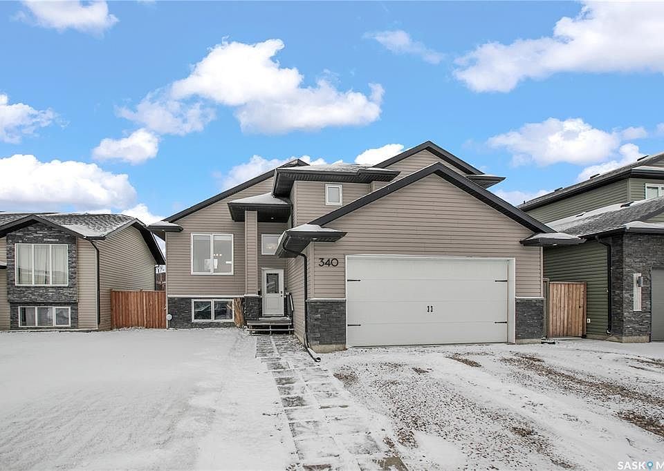 Welcome to 340 Haichert Street, nestled in the quiet, family-oriented community of Warman. This 1,253 sq ft modified bi-level offers the perfect blend of space, comfort, and modern style. Step inside to an inviting open-concept main floor featuring a large living room with maple railings and metal spindles, soaring vaulted ceilings, and an abundance of natural light throughout. The kitchen is a standout — showcasing granite countertops, rich maple cabinetry, a large eat-up island, tile backsplash, corner walk-in pantry, and stainless-steel appliances. There’s plenty of counter space for cooking, entertaining, and everyday family life. The main floor includes two spacious bedrooms and a full 4-piece bathroom. Upstairs, the private primary suite is a true retreat, complete with a 4-piece ensuite and large walk-in closet — a peaceful getaway from the rest of the home. The fully developed basement adds even more living space, featuring a large family and games area, a 4th bedroom, a 3-piece bathroom, laundry, and ample storage. Includes central AC, all appliances and window coverings. Outside, you’ll love the big deck overlooking a fully fenced and landscaped backyard, complete with enclosed under-deck storage and extra space for RV or boat parking. The 22’ × 26’ attached garage is insulated and ready for all seasons includes a 220V electric heater. Warman is a vibrant, growing community with excellent schools, parks, recreation facilities, and every amenity close by. This home is move-in ready and checks all the boxes — schedule your private showing today with your favourite REALTOR® before it’s gone!