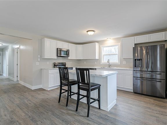 * STUNNING 3 bdrm 2 FULL BATH ranch with wide open floor plan on 1.82 private acres! This amazing property has been remodeled throughout! New shaker style kitchen with island breakfast bar, abundance of cabinets , DEEP SINK and NEW stainless appliance package! HUGE GREAT ROOM W/ NEW sliding door leading to rear yard backing to woods! Walk in pantry! 1st Floor laundry room ! MAIN BEDROOM SUITE w/ NEW bath , walk in closet and new sliding door leading to yard ! NEW LAMINATE FLOOR THROUGHOUT ! Large foyer w/closet and open turned staircase to basement ! Huge new main bath ! New siding ! New Town water service ! All new plumbing ! New lights! New 6 panel doors ! Wide shaker style trim package! New water heater! Mostly new thermopane windows ! Oversized 2 car garage ! Expect to be impressed!