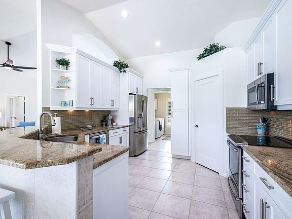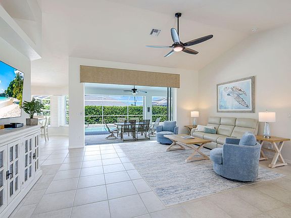 Welcome to this remarkable coastal oasis, where location and style merge effortlessly. This charming 3-bedroom, 2-bathroom home boasts a refreshing pool and an open, airy ambiance, creating the perfect setting for relaxed and comfortable living. Upon entering, you'll be greeted by vaulted ceilings that enhance the sense of space and openness throughout the residence. The interior has been tastefully adorned with cool coastal colors and decor, evoking a tranquil and beachy atmosphere. The remodeled kitchen features granite countertops, walk in pantry, breakfast bar and a separate dining area. Pocketing sliding doors that seamlessly connect the interior living spaces to the welcoming outdoor living area. Step outside, and you'll find a generously sized patio that is perfect for entertaining or simply lounging in the sparkling pool. Private yard offers a serene and secluded atmosphere. Perfectly located within walking distance to Mackle Park and a short distance to white sandy beaches, restaurants and shopping - allowing for convenient access to all the best that Marco Island has to offer. Don't miss the opportunity to make this coastal gem your own.  New Roof 2018, New A/C 2021, New Pool Heater 2023.  This is a must see!!