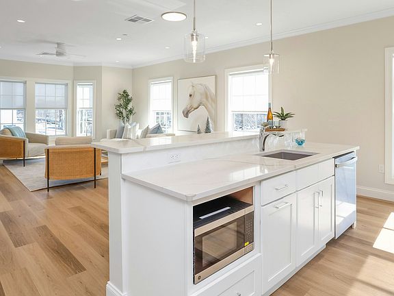 Welcome to this expansive 1,974 sq ft residence at Heights Crossing-Darien's premier new development offering elevated coastal living across the street from the Metro North station. This 3-bedroom, 3.5-bath home features three private en-suite bedrooms, a dedicated office, and a spacious open-concept layout filled with natural light from skylights and full-sized windows or French doors in every bedroom. The gourmet kitchen is outfitted with Wolf and Subzero appliances, a quartz waterfall island, and flows seamlessly into the living and dining areas, anchored by a gas fireplace and soaring ceilings. Step through French doors in the living room or primary suite to your expansive private patio-perfect for entertaining or unwinding outdoors. A formal foyer, walk-in closets, luxurious baths with separate full-size showers or tub, and an in-unit laundry room with washer and dryer complete the well-appointed interior. Enjoy covered parking, a dedicated storage locker, and access to premium amenities including a fitness and wellness center, golf simulator, breakout office spaces, and a fireside resident lounge and event space. Retail shops, restaurants, a grocery store, and pharmacy are moments away-with Darien's beaches and parks minutes from your front door. Luxury, location, and lifestyle-all in one. Available September 1st.