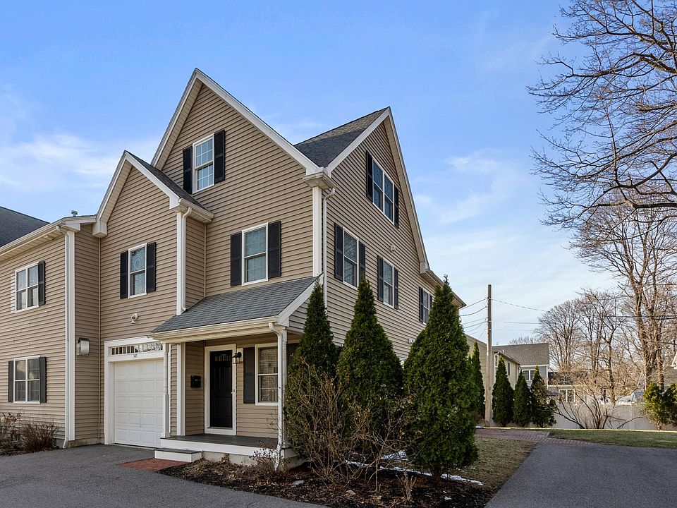 Wonderfully located, this 2008 construction townhome is .4 miles to the Commuter Rail, Trader Joes, CVS, Starbucks, and lovely assortment of shops and restaurants while also being in proximity to the school and offering convenient access to I95. The home, set off the street on a private drive, has a living room with fireplace, granite and stainless eat-in kitchen with top of the line appliances, half bath, and direct entrance garage on the main level. The second floor is comprise of three bedroom and two full bathrooms (one en-suite to the master bedroom), as well as a dedicated laundry room. The upper level has a grand room wonderful as a TV room, office, or play space, and a fourth bedroom. The lower level makes for a great recreation or gym space and has a full bath, additional side entrance, and elegant tile floor. Additional features of this property include, hardwood floors, central air, full size laundry machines provided, and a charming back yard. First month's rent, last month's rent, and a one month security deposit required. One month rental fee required. Rent includes water and sewer. Tenant is responsible for all other utilities. Town of Needham does not have curbside trash pick-up, tenant is responsible for removal of their trash and recycling. Lease cycle to follow the academic calendar. Refrigerator will be replaced.
