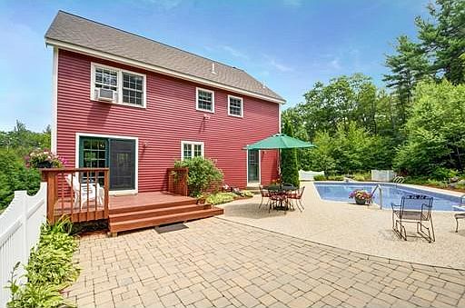 Privately located and MOVE IN READY! Beautiful three bedroom Colonial thoughtfully located on over 2 acres. Large eat-in kitchen with center island, Bosch dishwasher, gas cook stove and pantry overlooking patio, deck and pool area. First floor also offers a living room, family room with fireplace andhalf bath. Convenient mudroom laundry/area with own entrance. Hardwood throughout including stairs to 2nd floor. Three generous sized bedrooms. Finished rooms on the third floor has unlimited possibilities! 20x40 Inground pool. New deck and garage doors. Pleasure to show!