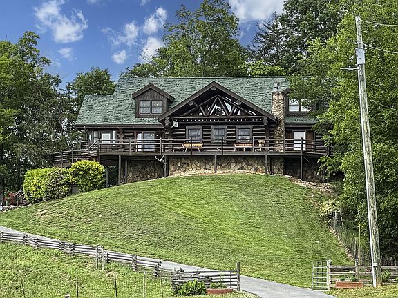 FABULOUS NEW PRICE!!! Incredible Views! Presenting one of the finest properties in the Smokies. Just minutes from the shopping, dining and attractions of Sevierville, Pigeon Forge and Gatlinburg. The Rocking L is the ultimate Adirondack-style Mountain lodge home. This prime property is very close to the Great Smoky Mountain National Park ensuring privacy and abundant wildlife. Another world awaits in this dream-like setting amid 12 private gated acres all against the stunning backdrop of Mount LeConte and one of the widest mountain views in the area. It's simply stunning. There's something for everyone to enjoy in an area offering residents access to the countless natural resources and opportunities for outdoor recreation such as hiking, fly fishing, biking and golf. The luxurious home is constructed of massive logs harvested in Canada. Spectacular great room anchored by a gorgeous stone fireplace and soaring vaulted ceiling (you have to take a look at the custom bar in this space). The large primary is on the main and has a one-of-a-kind bath with large walk-in shower custom cabinetry and a stunning copper soaking tub. Large Well-equipped kitchen with beautiful locally built custom cabinets and island. The stone counters are absolutely gorgeous. There is also a half bath and laundry room on the main level. Off the kitchen is a 4-season sun porch with stone floors. Upper level you will find more gorgeous ceilings, two bedrooms a bonus room, full bath and large loft space. Basement level/garage has an abundant amount of space for vehicles, workshop etc. There is also very ample storage space in this level including a large cedar storage room. The large deck provides a space to take in one of the prettiest views of the Smokies. The view is a 180-degree panorama. Enjoy the gazebo and many other exterior features. Fenced pasture, equipment barn, horse stalls etc. All this set in a stunning mountain setting. This is a special property positioned amongst the pines and hardwoods in a private setting. Here, one can experience an extraordinary home and enjoy privacy and mountain scenery. For added comfort there is a 24KW whole house generator which insures you will always have power. With proper approvals more homes/cabins may be able to be built. There are certainly a few super build spots on the property. If you're looking for a one-of-a-kind estate property in the Smokies this one should be on your list. Seller will consider selling the home furnished along with all outdoor property maintenance equipment. Furnishings and equipment are extremely nice. SELLER MAY CONSIDER SELLING APPROXIMATELY 8 BEAUTIFUL ACRES OF LAND SEPARATE FROM THE HOME. Some photos were taken via drone.