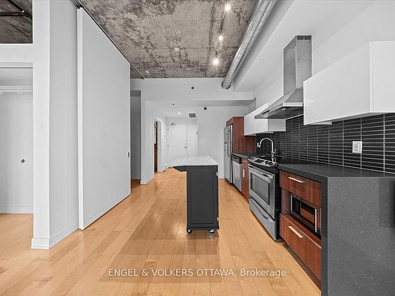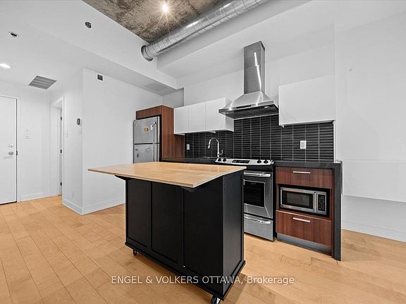 This 1-bedroom + den suite blends industrial flair with everyday comfort, featuring 9 ft ceilings and floor-to-ceiling windows that flood the space with natural light. The open-concept layout is enhanced by hardwood floors throughout, a sleek kitchen with quartz countertops, stainless steel appliances, and convenient in-unit laundry. The spacious den offers a versatile space, perfect for a home office, reading nook, or creative studio. The bedroom provides a full wall of closet space and a cozy retreat to unwind at the end of the day. Step out onto your oversized east-facing balcony overlooking the Museum of Nature - ideal for morning coffee or sunset cocktails. Enjoy resort-style amenities, including a saltwater pool with cabanas, a spacious outdoor patio with BBQs and a fireplace, a fully equipped fitness centre, party room, and even a private movie lounge. With Shoppers, LCBO, and Starbucks at your doorstep and just moments to the Glebe and Centretowns best restaurants, shopping, and entertainment, this location can't be beat. Parking available for an additional $250/monthly.