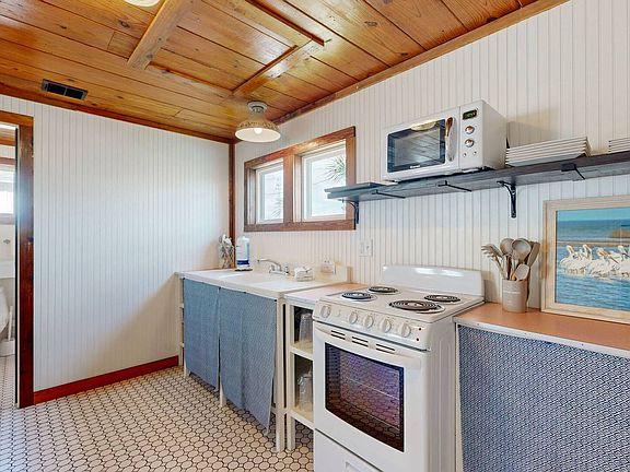 Step inside this inviting cottage to discover an open floor plan that seamlessly integrates the living, dining, and kitchen areas, creating a warm and welcoming atmosphere. The space is thoughtfully designed to maximize comfort and functionality. Additionally, for added convenience, the sofa easily transforms into a bed, providing extra sleeping arrangements for guests.