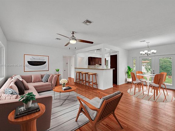 Charming move in ready home in the heart of Griffing Biscayne Park. Spacious 3 bedroom, 2 bath has a nice flow with with lots of natural light. The third bedroom has it’s own private entrance with a good decent kitchen. Great for income producing, can be used for in-laws, nanny or private office. Featuring well preserved wood floors, new impact windows & doors, new garage door, new fence, and 2021 air conditioner. Great kitchen with lots of storage space, stainless steel appliances and a lovely view to the garden. Backyard has lots of potential with room for a pool and to be made into the ultimate entertaining space.