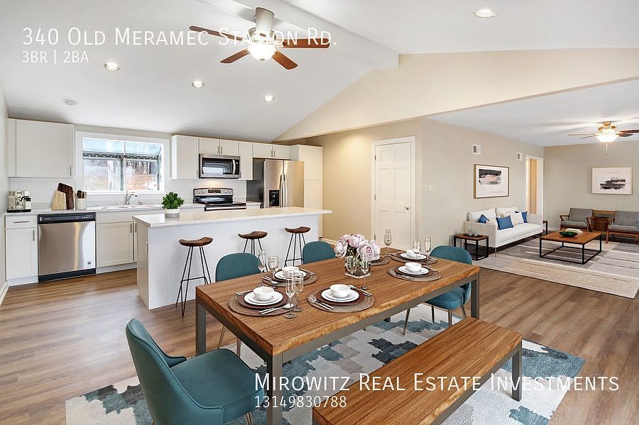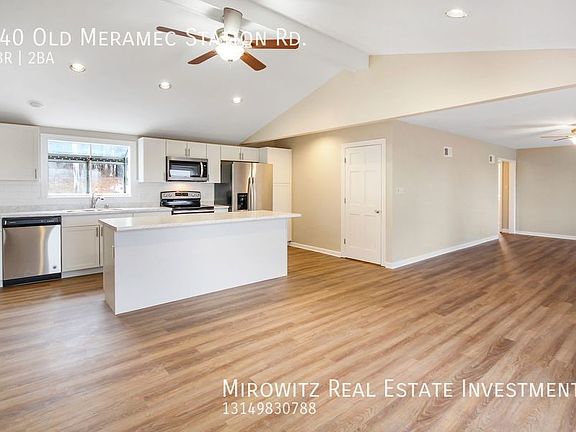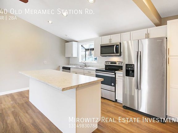 Beautifully renovated 3 Bedroom/2 Bath Manchester ranch in Parkway school district. Updated kitchen with large center island and stainless-steel appliances (smooth top electric range, refrigerator, dishwasher, and microwave). Open floor plan features floor to ceiling stone fireplace and is perfect for entertaining. Finished walk-out lower level with full bathroom. Large 31'x17' private deck overlooks the scenic 1+ acre lot. Directly across from Manchester Aquatic Center. Excellent location with close proximity to restaurants, retail, and easy access to 141. Pet friendly- $200 pet fee and $20/month pet rent per pet. Lawn mowing included. Tenant responsible for all utilities- electric, gas, water, sewer, and trash. Security deposit equal to one month's rent. 2 Car Garage