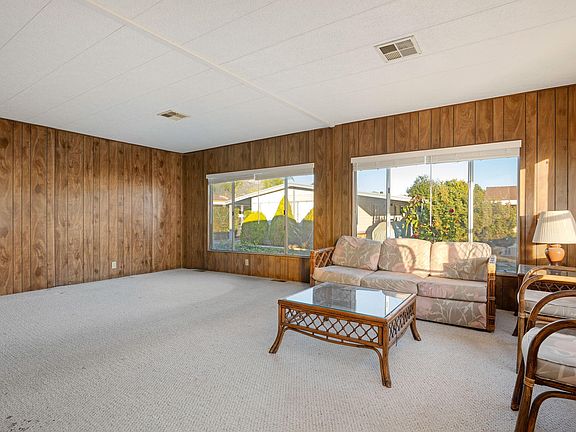 Offered for the first time in 35 years, this Silvercrest triple-wide is located in San Vicente, a sought-after gated community for adults 55+, known for its welcoming neighbors and resort-style amenities including a year-round indoor pool and spa, tennis and pickleball courts, private gym, clubhouse, and library.