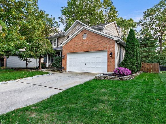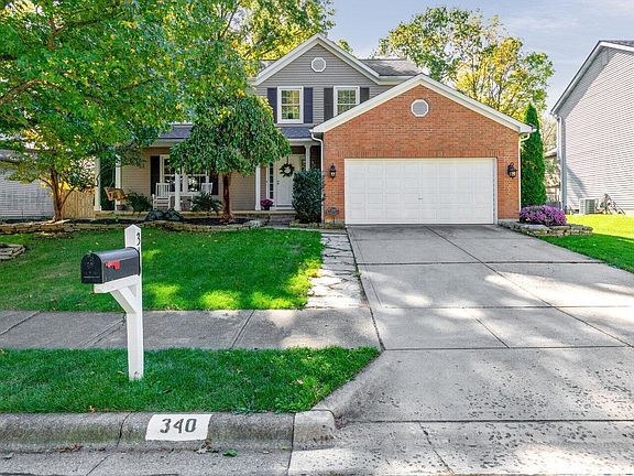 Discover this beautifully maintained and updated gem in Delaware's desirable Shelbourne Forest community. Enjoy your morning coffee or relax at the end of the day on the charming lemonade front porch. Step inside to gorgeous, easy-to-maintain ceramic tile flooring flowing throughout the main level. This home offers abundant living space, featuring a bright living room, a formal dining room, and a cozy family room centered around a warm fireplace. The eat-in kitchen has been refreshed with updated countertops and a crisp white tile backsplash. Upstairs, find four spacious bedrooms. The large main suite is a true retreat, boasting an ensuite bath, a private vanity area, and a walk-in closet. The partially finished basement provides a flexible rec room perfect for a game room or movie nights at home. Outdoors, the fenced backyard is an entertainer's dream, complete with a tiered deck, pergola, and mature landscaping, including your own buckeye tree!