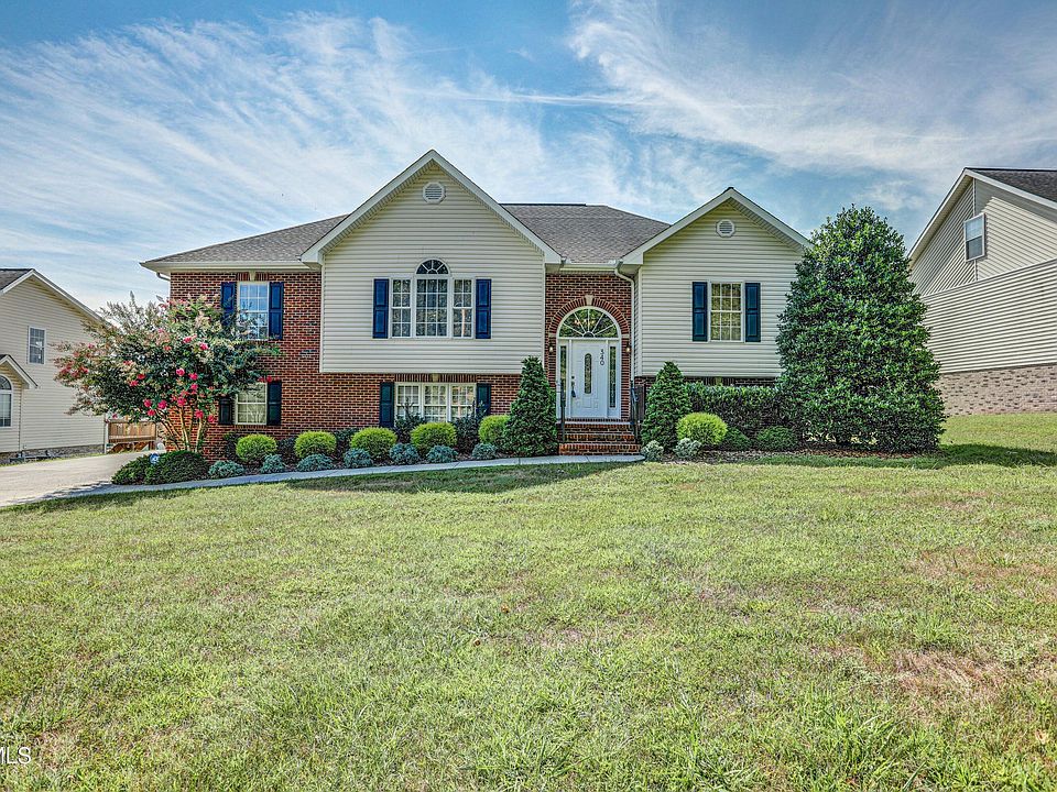 Welcome to this beautifully crafted custom-built home, offering 3 bedrooms, 3 full bathrooms, and a desirable split-bedroom floor plan designed with both comfort and style in mind. From the moment you step inside, you'll notice the attention to detail, elegant crown molding, soaring vaulted ceilings, hardwood flooring and a stunning stone gas fireplace that anchors the main living area. The kitchen is a cook's dream with its pantry, stainless appliances, oversized island, and abundance of cabinets and counter space for meal prep. Just off the dining area you can walk out to the screened-in porch and enjoy the amazing views! The primary suite is a true retreat, complete with a tray ceiling, dual walk-in closets, and an en suite bath featuring double sinks, a large jetted tub and a separate shower. Completing the upstairs are two additional bedrooms and a full bath. The finished lower level expands your options with two versatile bonus rooms that can serve as a den, office, game room, or playroom. It can even be a private guest area with its own full bath. Outdoor living is just as impressive. Enjoy morning coffee or evening gatherings on the previously mentioned screened-in deck while soaking in the breathtaking mountain views, or relax on the covered lower patio that provides year-round enjoyment. Furthermore, the generously sized backyard creates an ideal place for outdoor activities, ensuring that both your family and fur-babies have ample room to play and explore. The 2-car garage, which measures over 1,000 sq/ft of unfinished basement space, offers ample storage, plus additional space for a workshop or tools. With its thoughtful layout, updated features, and exceptional location, this home is more than just a place to live, it's a lifestyle waiting to be enjoyed. Schedule your showing today before this one gets away!! Sq/Ft and dimensions are approximate. All info. is deemed reliable, but it is the responsibility of the buyer and buyer's agent to verify.