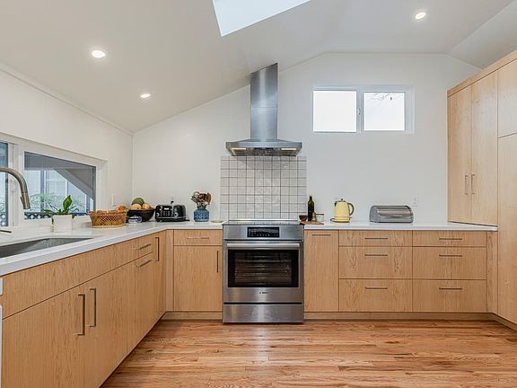 Welcome to your garden oasis in Midtown Petaluma! This charming single-story home is flooded w/natural light and features three bedrooms and 2 bathrooms w/1,460 square feet of living space (home is 1,246 square feet and detached office in backyard is 214 square feet). Located on a 9,310 square foot lot, this beautiful home has been remodeled and upgraded: kitchen w/custom built cabinets in 2025 (appliances, plumbing, electrical and lighting too), bathrooms in 2014/2017, refinished hardwood floors in 2022, new roof and skylight in 2023, dual pane windows, air conditioning in 2024, new hot tub in 2022, furnace replaced in 2009, water heater replaced in 2020, sump pump in 2020, backyard drainage in 2010, new roof over deck in 2021, new washer/dryer combo in 2024, landscaped front and back yard w/automatic irrigation and low voltage lighting, new roof for shed in 2024. The living room features cathedral ceilings, open beams, ceiling fan and a storage space above w/ladder access. The backyard is great for entertaining and gardening w/mature landscaping, 2 sheds, fruit trees, covered deck, hot tub, covered work/shop area and a decomposed granite patio. Close to downtown Petaluma, SMART Train, wineries, Whole Foods, restaurants, shopping, schools, parks, library and freeway access.