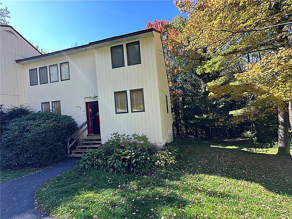 Experience Catskill living at it’s most carefree. This 3 bedroom, 2 bathroom townhouse has been completely and beautifully renovated. The open concept area combines a large living room and dining area featuring oak floors, tongue & groove pine cathedral ceilings, a tiled fire place with a rustic edged mantle. The kitchen has wood cabinets, granite counters, a sleek tiled back splash and stainless appliances. There is one bedroom with a large walk-in closet and a bathroom on the main living level. Upstairs are two bedrooms, one bathroom and a laundry room. The large upstairs bathroom is accessible via both bedrooms and has a double sink with a granite counter top and a walk in shower. The spacious entertaining deck off of the living room faces the forest on two sides - a great place to dine al fresco! A full basement with concrete floor, insulation and heat add to the overall value of this townhouse. Roxbury Run Village has a heated pool, tennis courts, dog park, picnic area and nature trails. The HOA includes snow removal, landscaping and exterior maintenance. 2.5 hours from NYC and minutes to two ski centers, shopping, restaurants and more! Don’t let this one slip away!