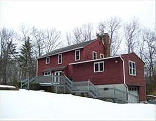 Classic New England style cape with hardwood floors throughout. Three freshly painted bedrooms with new carpet and natural woodwork. First floor full bath and laundry. The living room has a wood-stove insert and built-in cabinets for extra storage. Large dining room with access to the deck through french doors. A first floor office and a large kitchen addition make this a unique design. Nicely landscaped and set back off the road, surrounded by trees on this almost 2.5 acre wooded lot.
