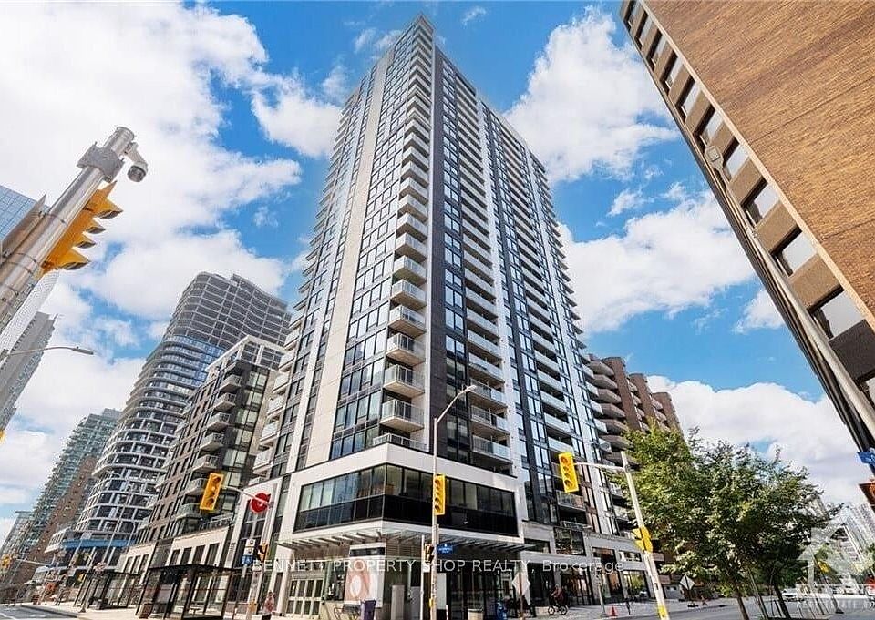 Discover urban elegance in this stunning condo perfectly positioned in Ottawa's vibrant core. Floor to ceiling windows of this corner unit allow natural light to flood in and provide a chic urban setting that can also be appreciated from the spacious balcony. Enjoy in-suite laundry, a double storage locker, and exceptional amenities: fitness centre, indoor pool, theatre room, lounge, guest suite, business space, 24/7 concierge, and outdoor terrace with BBQs/seating - all supported by low condo fees that include heat and water. Convenience is at your doorstep being situated above the Lyon LRT station, with a grocery store on the main level, and access to the city's amenities, shops, restaurants, and trails along the Ottawa River. The location is ideal, and the condo is elevated in every way with numerous upgrades and custom blinds. Don't miss this prime opportunity to own a piece of the exciting and efficient downtown lifestyle. Schedule a viewing today!