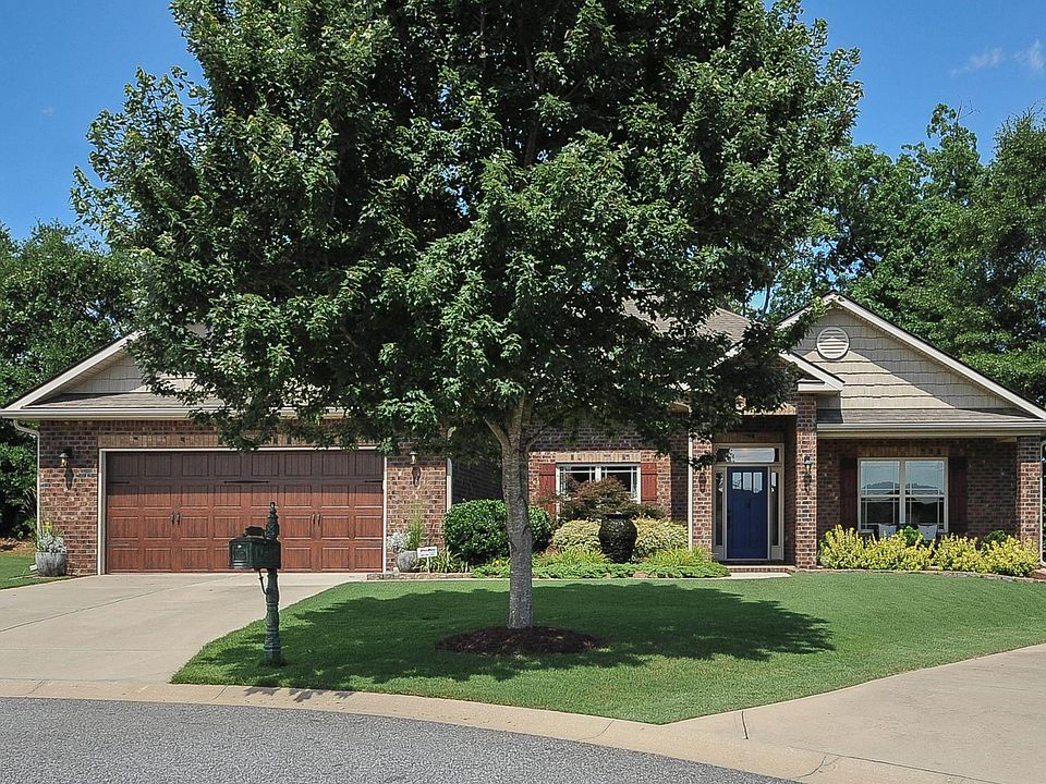 This is a great opportunity to purchase the most popular floor plan in the Walnut Ridge subdivision. This is a quiet, 44 home, subdivision in the unique Five Forks area. The home is a beautiful, all-brick ranch and move-in ready. The original homeowner has taken exquisite care of this home. As you enter from the covered front porch you are greeted by beautiful seamless hardwoods throughout the open concept foyer, dining room and great room area. Enjoy the gas fireplace in the colder months and the large screened-in back porch anytime you like. The owners suite is carpeted, has two walk-in closets with the recently remodeled en-suite spa treatment owners bath with separate sinks and huge doorless walk-in shower, and separate toilet room. When you enter the home there is also a private Den/office to the right of the foyer opposite the dining area. The Kitchen and Breakfast area complete the large open concept area of this home. As this is a split floor plan design, three additional bedrooms and two full baths complete the other side of the home. Off of the screed-in porch is an additional paver patio space. This overlooks a beautiful and extremely private back yard oasis with rain fed rock "stream" to complete the back yard. Buyers, ask your agent to print off the Updates Document. Do not miss this unbelievable opportunity to own a beautiful home in a desirable location. Schedule your showing today!