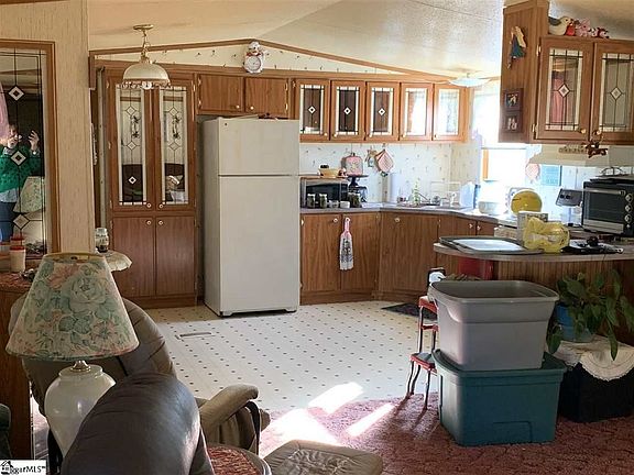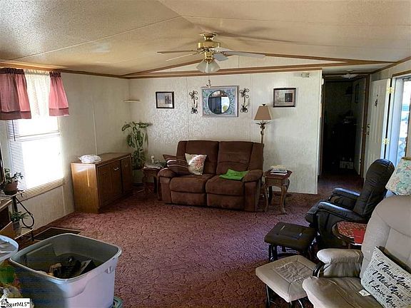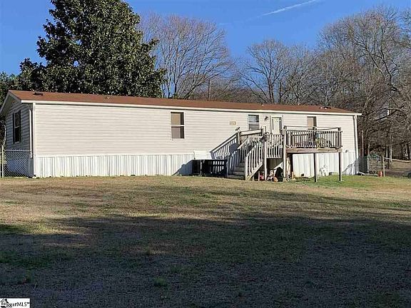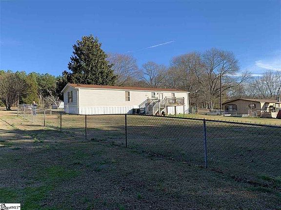 Convenient to I-85 on a quiet neighborhood street and over half an acre lot with a 2Bedroom/2Bath 1998 singe wide mobile home (16x80) with built on front porch, back deck and outside shed that would convey via Bill of Sale with land purchase. (Refrigerator, Stove, Counter microwave,washer & dryer will all remain in the mobile home) HVAC recently serviced. Backyard is chain-link fenced. Property goes beyond fence into the wooded area. NO HOA fees or restrictions. Make your offer today before it's gone!