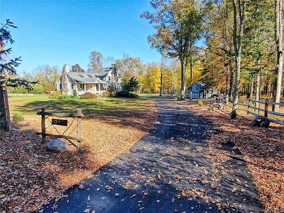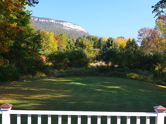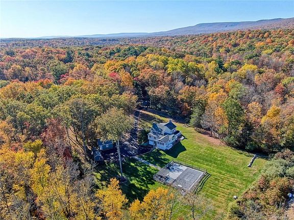 Sweeping, breath-taking views of the Shawangunk Ridge await you! This 3 bedroom/2.5 bath updated farmhouse has it all. Step inside and youare immediately awed by the 17ft. tall vaulted ceiling and wood beams. The sun's glow off the hardwood floors creates a warm and invitingwelcome. A floor to ceiling stone fireplace provides the perfect focal point promising cozy evenings with a crackling fire. French doors andwindows frame the stunning mountain views. In the original part of the house is the cozy family room with a second stone fireplace that's opento the kitchen. The kitchen has custom Apuzzo cabinets, granite countertops, a Rohl farm sink along with upper end stainless steel appliances.And, captured by the large bay window is the expansive and colorful view of the Gunks. Just around the corner is a half bath and sunroomoverlooking the yard and the pool area, which is currently used as the dining room. Off the family room you'll find the primary bedroom, with a walk-in closet. The updated primary bath has imported Italian subway tiles and custom vanity with a marble countertop. Up the staircase, with abalcony overlooking the living room are 2 bedrooms and fully renovated bath complete with a slipper tub. The lower level, offers easy access tothe drive under garage, mechanical room and entertainment/media room. Outside, a beautiful 5 acres is your playground. In addition to the40x20 gunite, saltwater, heated pool, is a barn/garage (with electric) which can double as a studio or workshop and a tool shed. The circular blacktopped drive provides a smooth entrance for you and your guests. Easy access to Mohonk Preserve, Minnewaska State Park for worldreknown rock climbing and the many hiking and biking trails.