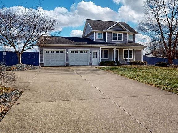 Situated on 1.77 acres +/- is this wonderful 4 bedroom, 3.5 bath home in Jasper, IN. The covered front porch welcome you into this open concept home. The spacious living room is open to the well-appointed kitchen with an abundance of cabinets and Quartz counter tops. Plenty of space to eat with the massive bar or the eat-in kitchen area. You are sure to appreciate the main level owner's suite with a walk-in shower and extra large walk-in closet. The laundry room and half bath complete the main level Upstairs you will find 2 additional bedrooms a full bath, huge walk-in closet and another entertaining area. The mostly finished basement comes complete with a full bathroom, 4th bedroom, another room and plenty of storage. The basement also has a second staircase with access to the oversized 2 car garage. Step out back to find a nice entertaining or relaxing space with a fenced yard, covered patio, fire pit, an outbuilding and a basketball area. The stocked pond on the other side of the fence is an added bonus. If you are searching for a property with space yet with a convenient location, then your search is over.