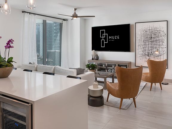 We are now welcoming virtual tours by appointment only. Please contact us today to schedule your appointment. Located in the heart of luminous Downtown Miami, MUZE is the epitome of connected and the definition of cool, with Whole Foods, Silverspot Cinema, and a curated collection of the city's best restaurants just outside your door. Vibrant. Brilliant. Radiant. MUZE is all this and more, home to an all-in-one lifestyle with all-access perks. A multi-faceted residence with high-end hospitality style, MUZE is the bright spot in the city skyline.