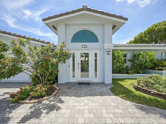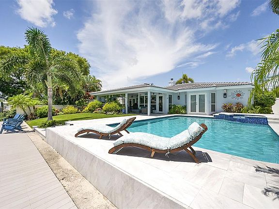 Step outside this redesigned backyard paradise featuring a heated pool & spa, stunning updated natural stone deck, & a spacious covered patio—ideal for your dream summer kitchen. Lush landscaping & a large garden space. Generous living spaces with marble floors & fireplace, wet bar, & peaceful water views. Freshly updated bathrooms, all hurricane proof, plantation shutters, & ample storage. Indoor laundry, circular driveway & side-gate parking. Your waterfront lifestyle starts here!