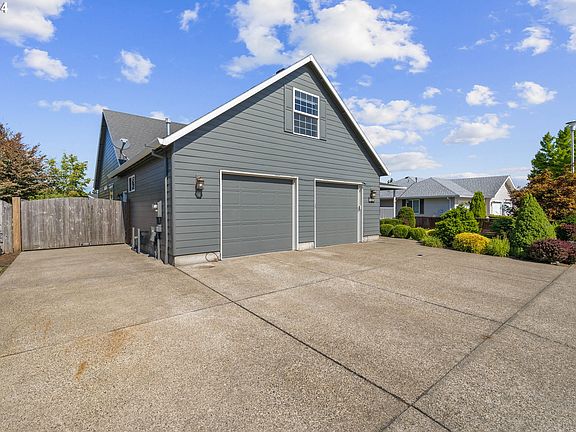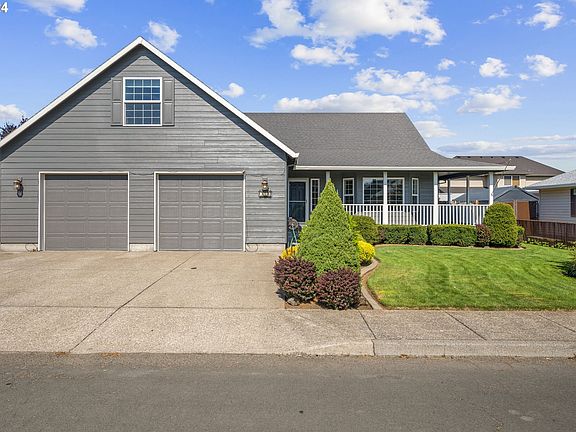 Sit on your wrap-around porch and watch the world go by! This well-maintained, freshly painted traditional house offers one-level living in a quiet, established Canby neighborhood. Open kitchen and family room + formal living room provides flexible living and great main-level flow. Updated kitchen with eat-in bar, hardwood floors + gas fireplace in family room. Primary bedroom with en suite and walk-in closet. 4th bedroom/bonus room above the garage provides a quiet option away from the rest of the house. Extra large garage with work bench. Gorgeous established fully-fenced yard with patio for outdoor dining, garden shed and raised beds for a bountiful vegetable garden. RV Parking and convenient location. Blocks to Lee Elementary, Canby Swim Center and Legacy Park!